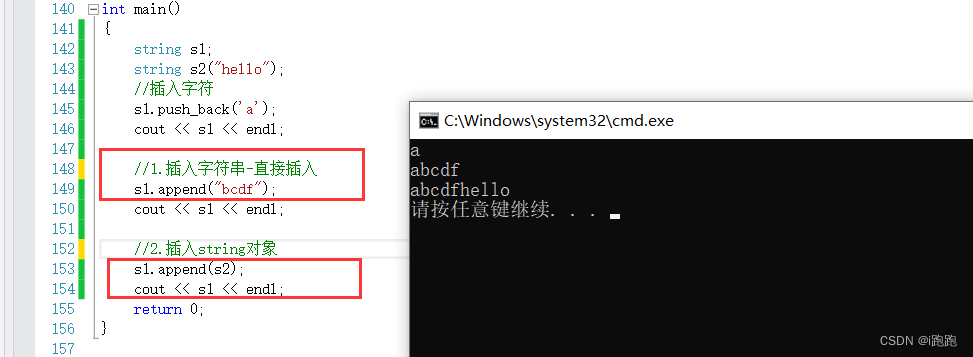 两种用法:直接插入字符串、插入string类的对象