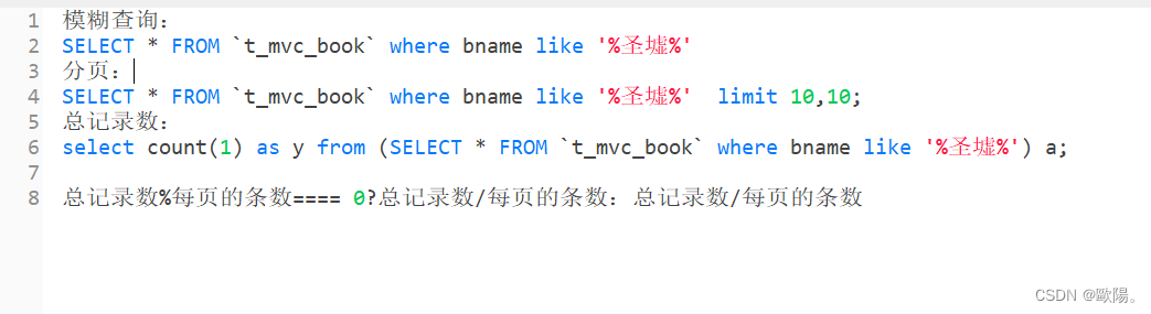 - //从上面得到select count(1) as y from (SELECT * FROM `t_mvc_book` where bname like '%圣墟%') a;