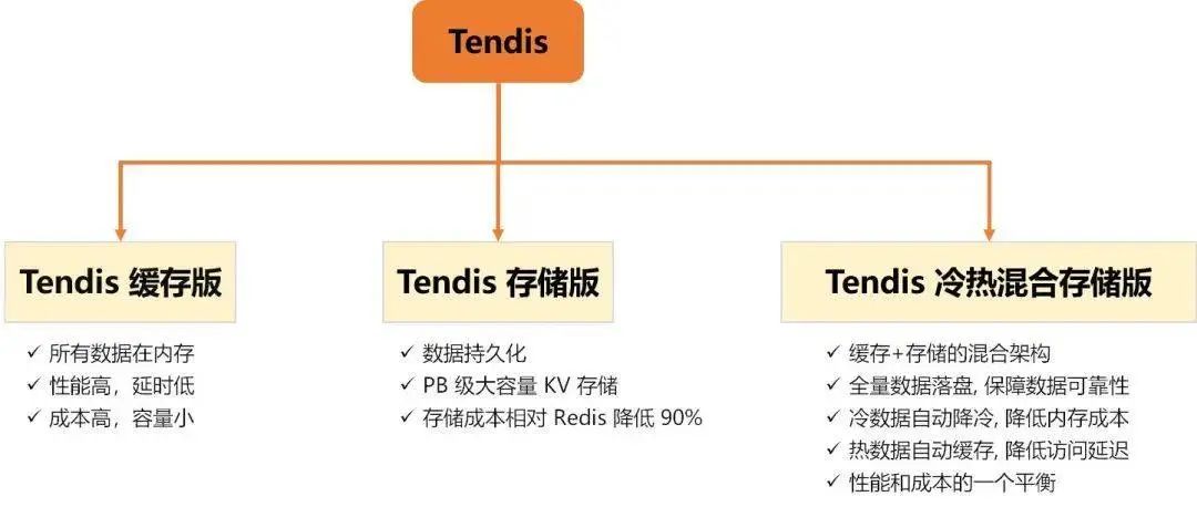Tendis 是集腾讯众多海量 KV 存储优势于一身的 Redis 存储解决方案, 并 100% 兼容 Redis 协议和 Redis4.0 所有数据模型。作为一个高可用、高性能的分布式 KV 存储数据库, 从访问时延、持久化需求、整体成本等不同维度的考量, Tendis 推出了 缓存版 、 混合存储版 和 存储版 三种不同产品形态,并将存储版开源。感兴趣的小伙伴 可以去 Github 关注我们的项目: Tencent/Tendis