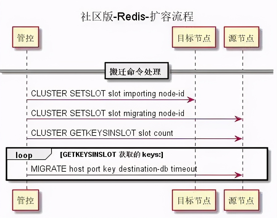 Migrate 命令每次搬迁一个或者多个 Keys, 将整个 Slot 搬迁到目标节点需要多次网络交互。