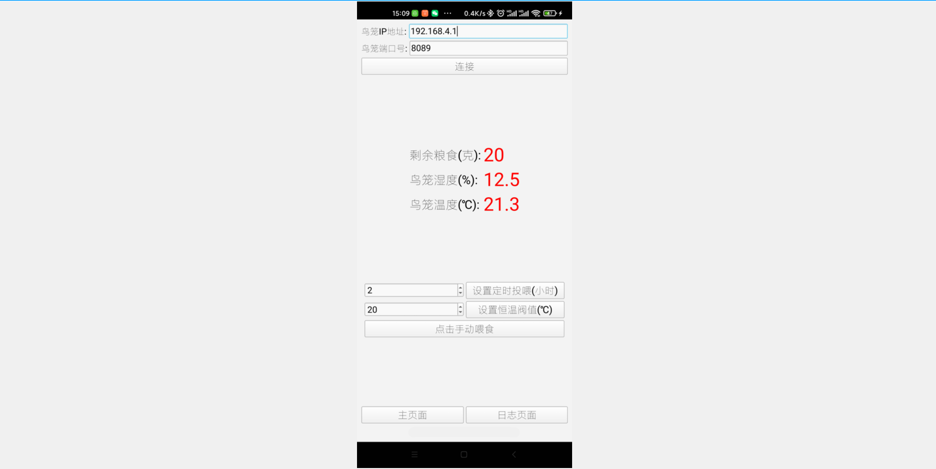 (1)手机APP:设计一款Android手机APP,一款windows客户端作为上位机,手动控制粮食投喂,设置恒温阀值,定时投喂、温度、湿度实时显示、剩余粮食重量等功能。