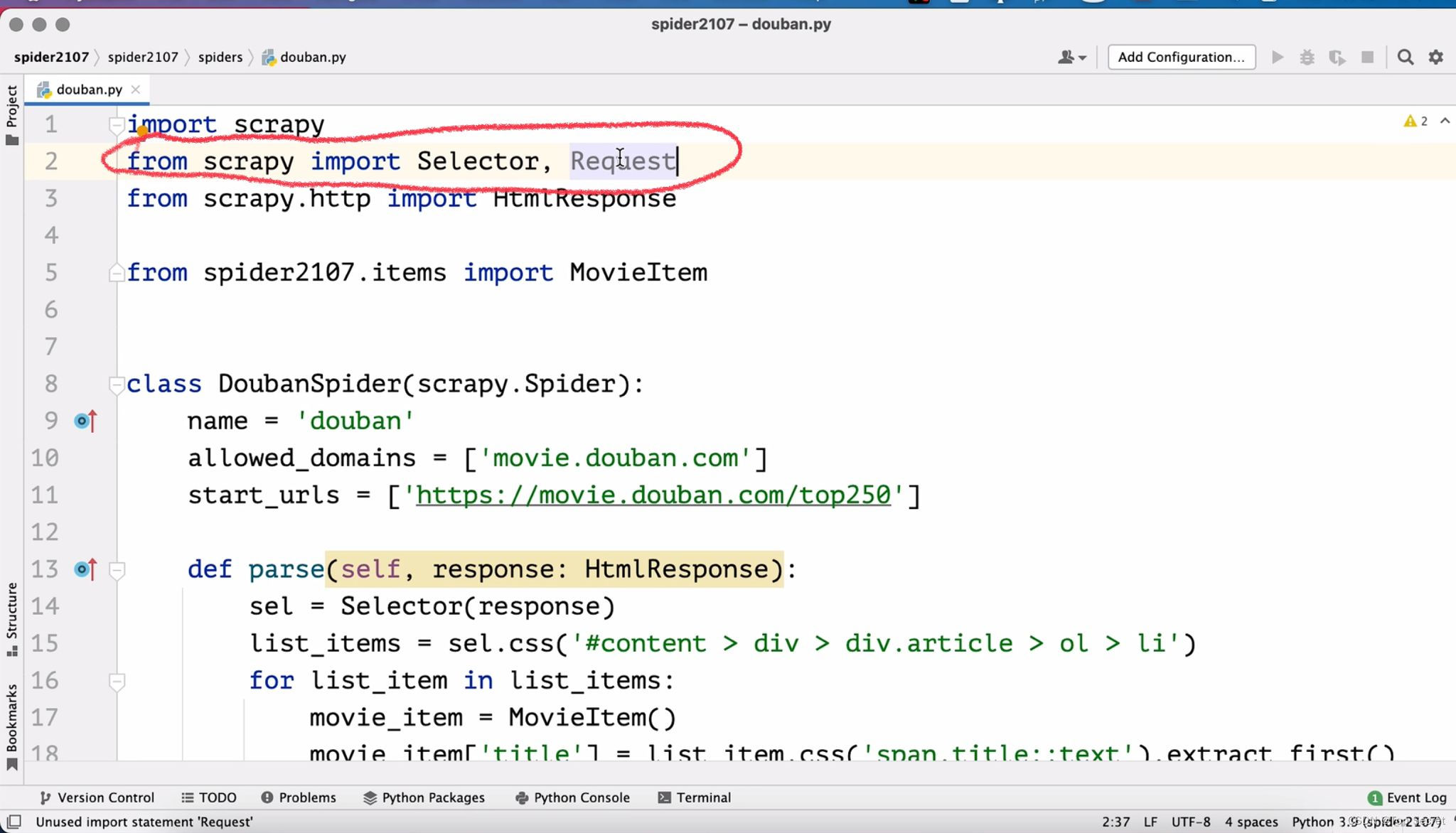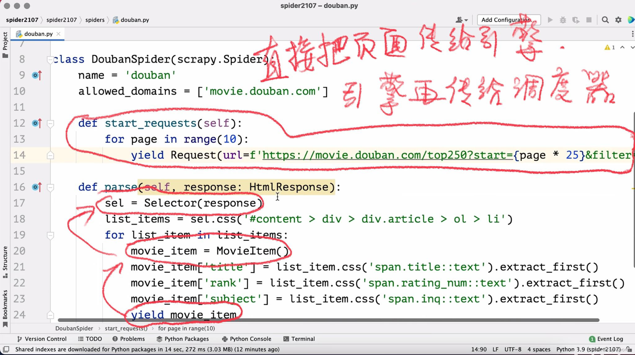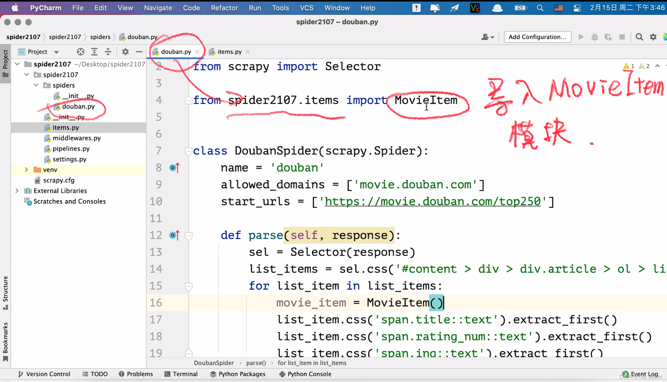 实例化MovieItem(),得到movie_item对象,并将css选择器提取的页面数据存入movie_item对象中: