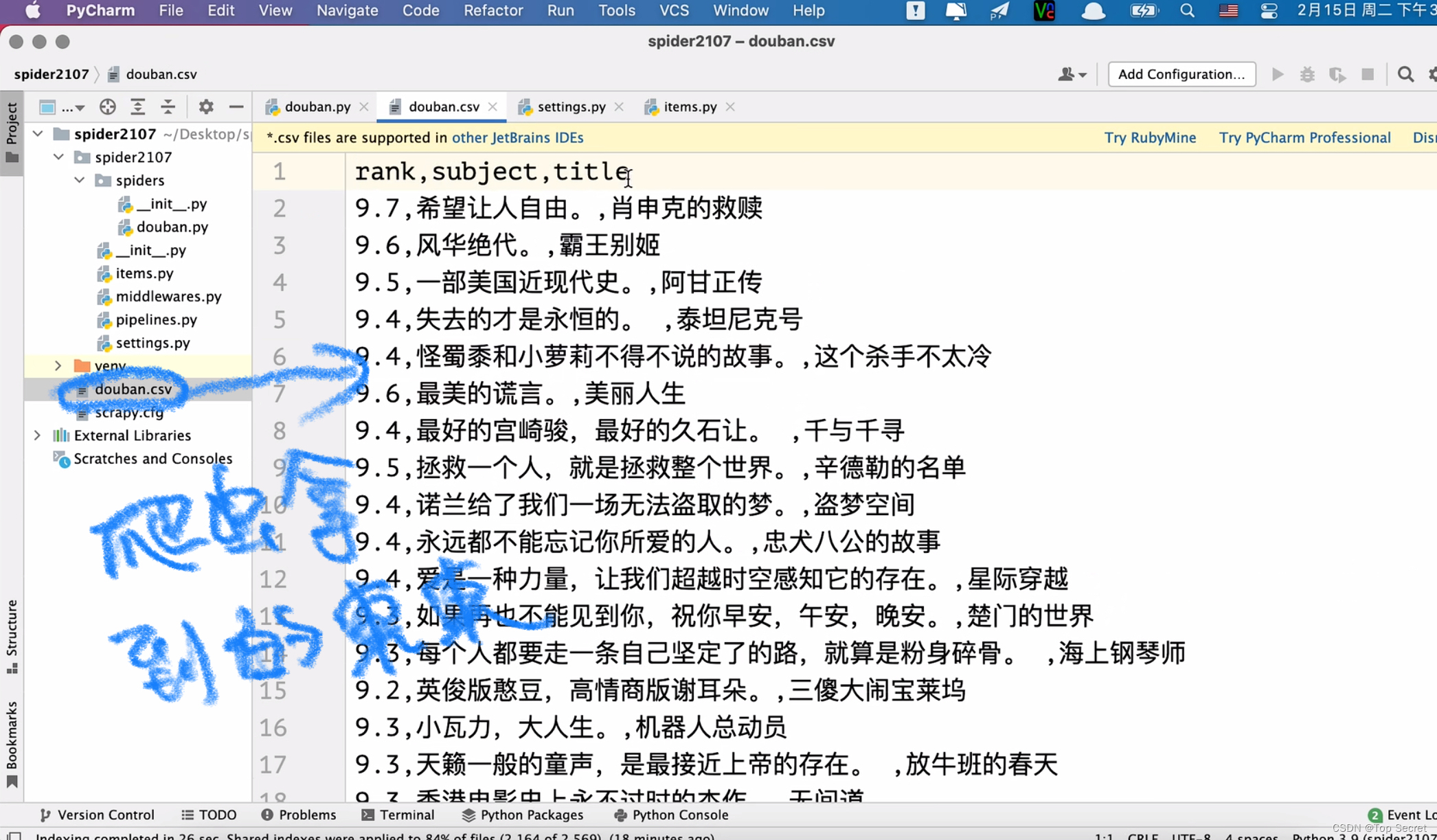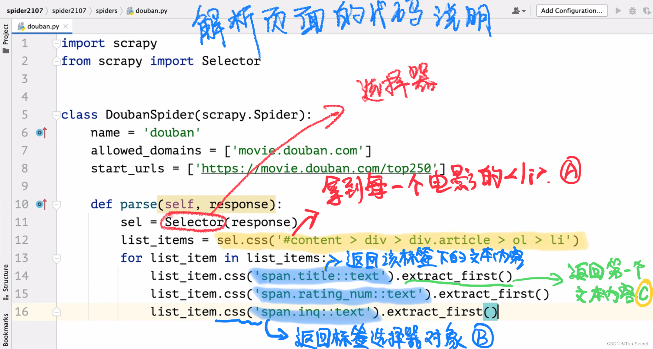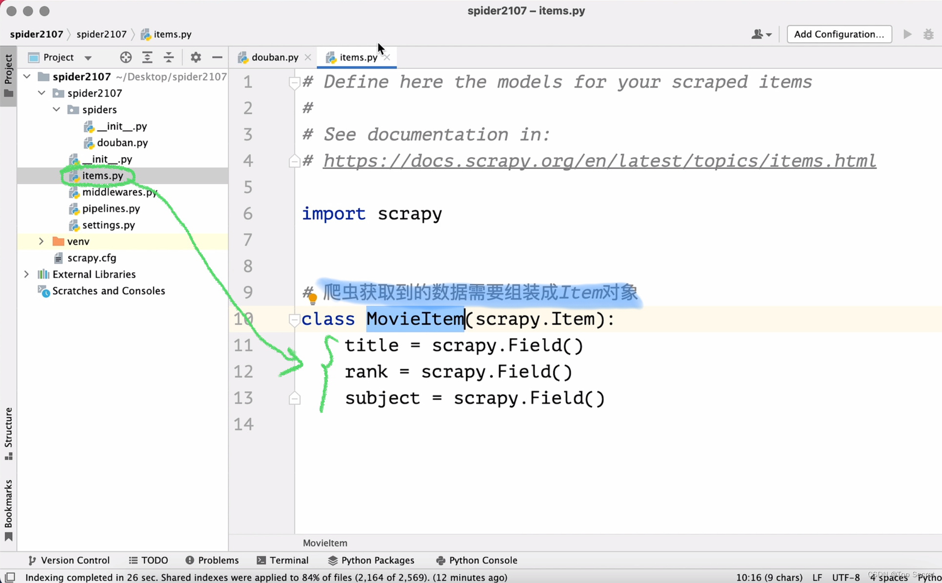 实例化MovieItem(),得到movie_item对象,并将css选择器提取的页面数据存入movie_item对象中: