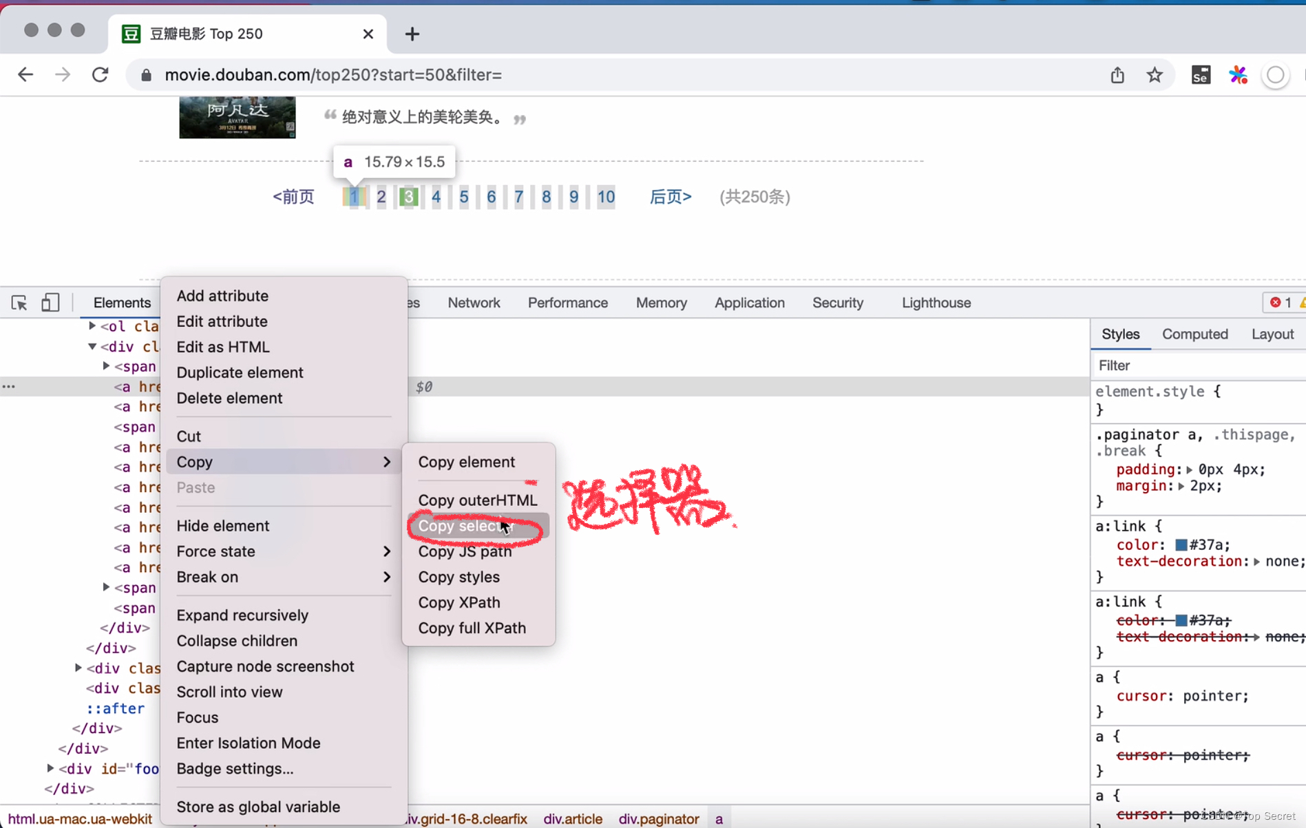 3.一个解析页面的基本说明(CCS选择器的使用)