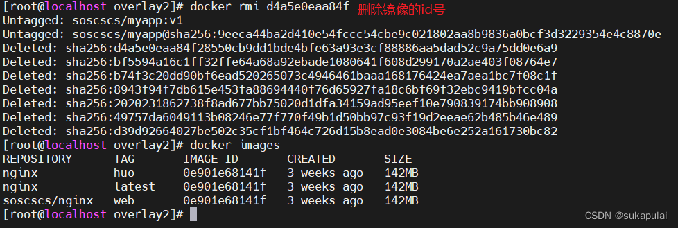- docker rmi 镜像ID号 #会彻底删除该镜像