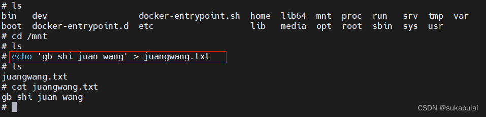 - docker exec -it a2dc63c8ef33 cat /mnt/juangwang.txt