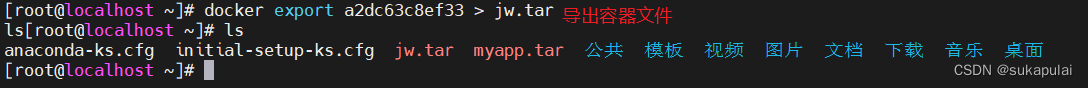 - 导出格式:docker export 容器ID/名称 > 文件名