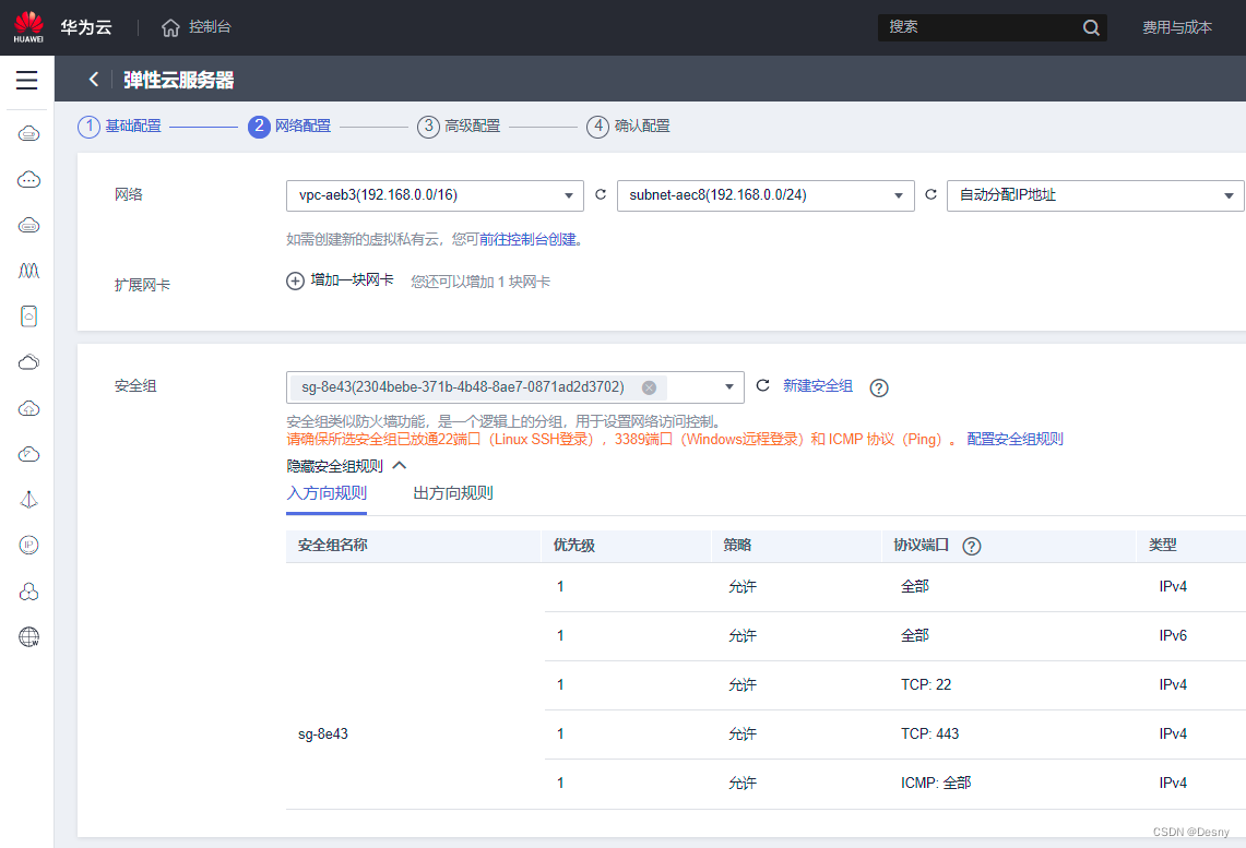 1. 控制台->弹性云服务器ECS->购买弹性云服务器 (按照需求配置服务器)
