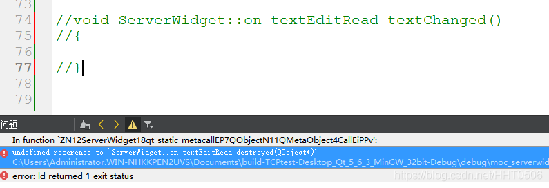 之后如果想取消信号与槽的关联,直接删除槽函数与声明是不行的,会提示以下错误: