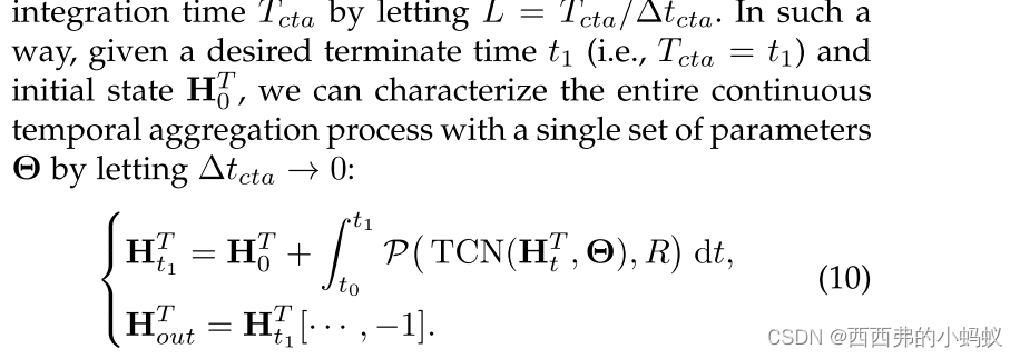 在MTGODE中,我们基本上集成了时间聚合和图传播过程,以从历史观测中捕获丰富的时空模式。在每个聚合步骤中,为了简单起见,时间序列之间的空间依赖性可以通过特定图快照上的特征传播和线性变换的组合来表征