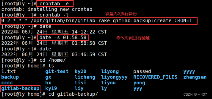 - gitlab_rails['backup_path'] = "/home/gitlab-backup" 指定备份的路径