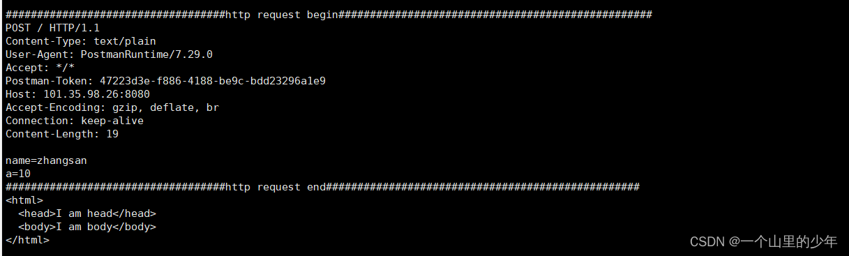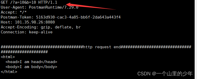 我们运行服务器我们使用telnet命令访问我们都服务器时并发送HTTP请求时: