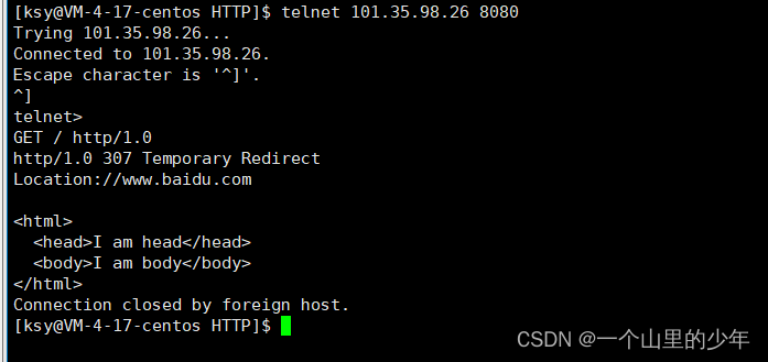 同样的我们可以使用telnet指令向我们的服务器发起请求,这样也是可以得到响应的: