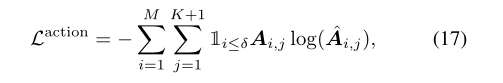 最后的解码器层的最终输出用于生成未来动作,通过应用FC层,后跟softmax和持续时间向量: