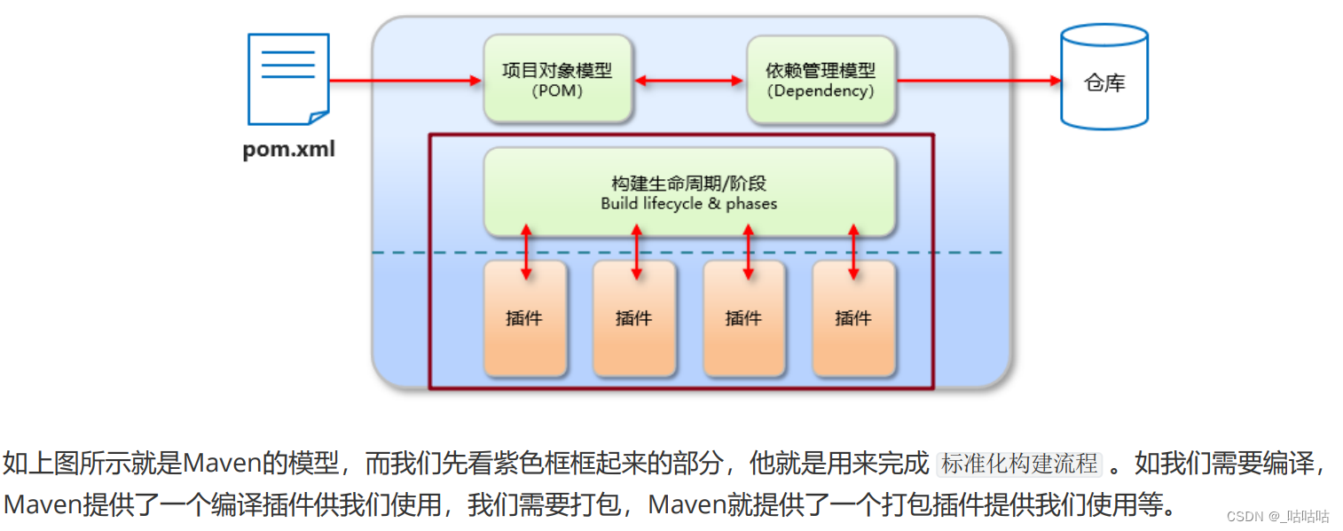 - 提供了一套标准化的构建流程(编译、测试、打包、发布...)