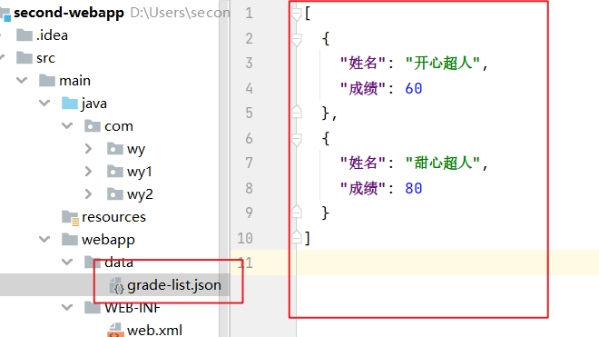 - //写的话操作是write,在GradeListJsonServlet类里有
