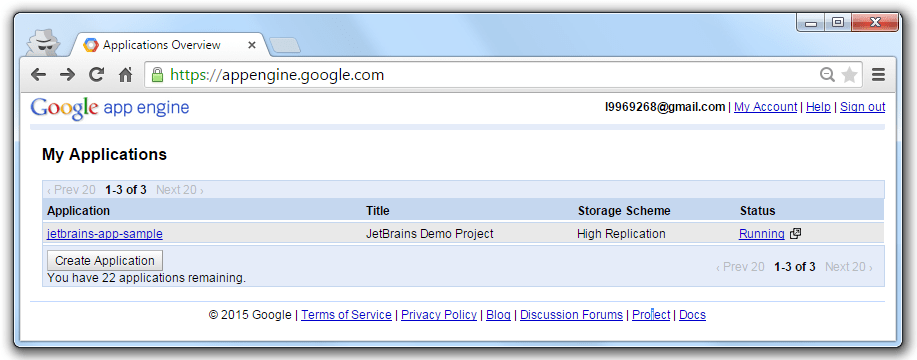 - 如果您要将应用程序上传到云或在云服务器上部署工件,请在Google App Engine上创建一个应用程序。