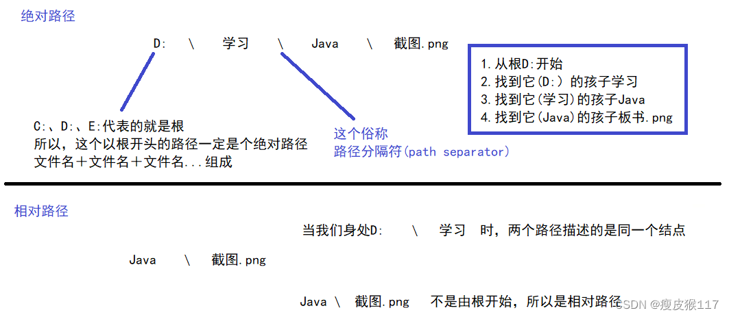 5. 文件路径"/"或者"\\"表示路径分隔符,Java下使用哪个都可以6. "."和".."的含义