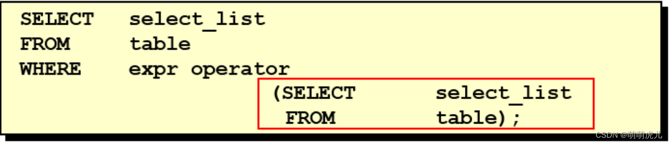 单行操作符对应单行子查询,多行操作符对应多行子查询