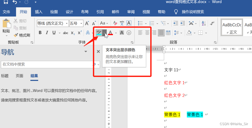 1、文本突出显示颜色 --- Word中的表述