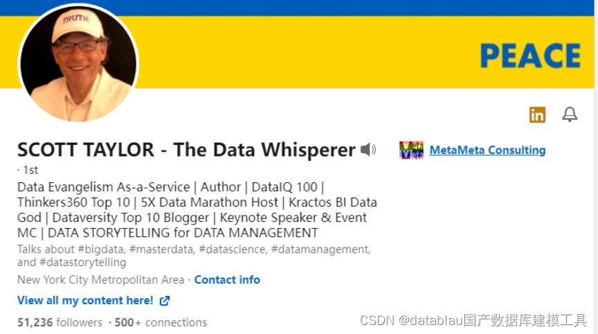 这个内容来自于数据圈著名网红,江湖人称“数据吹哨人”的Scott Taylor. 老先生非常活跃,发表过很多脍炙人口的文章和演讲。