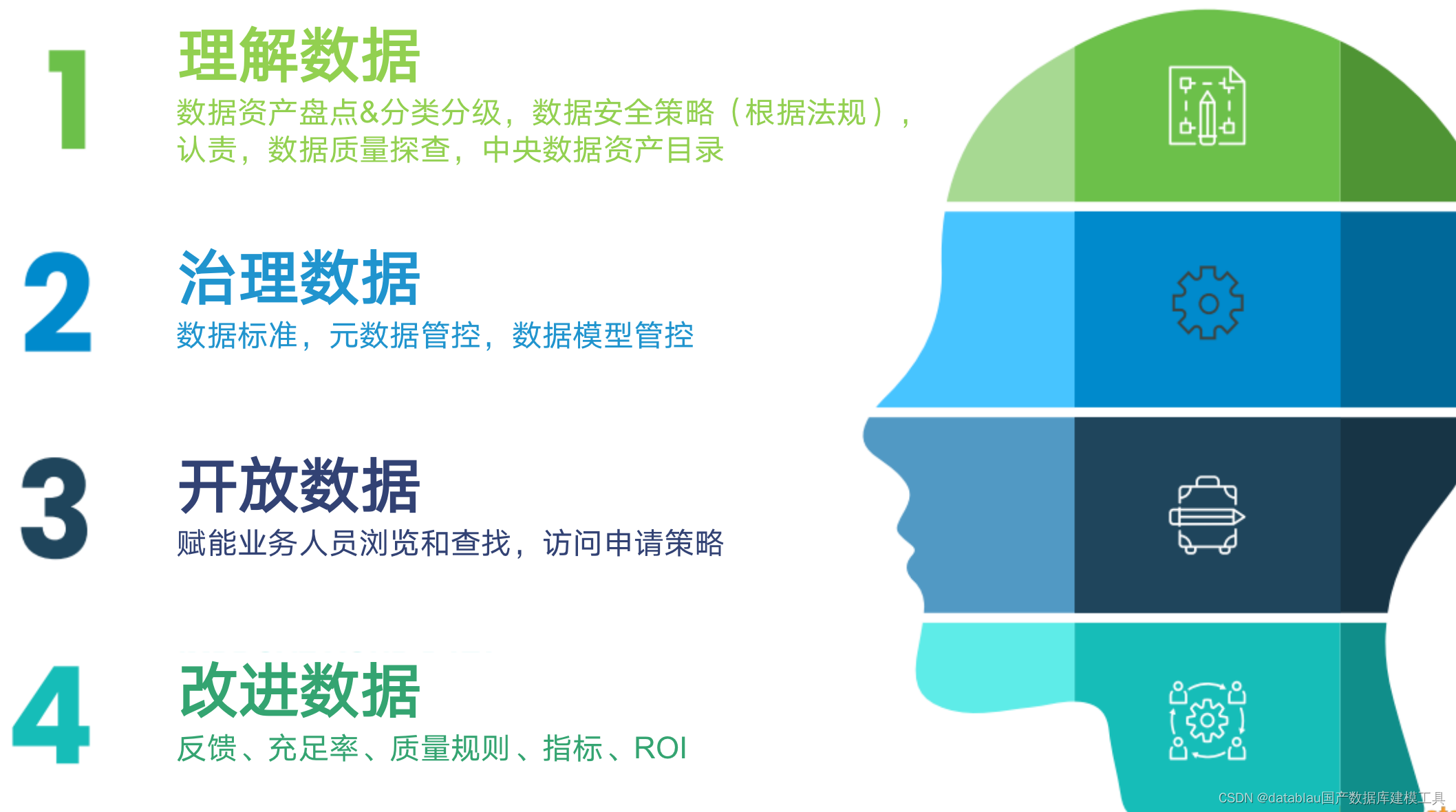 数据是把双刃剑,一方面可以释放数据价值,另一方面又需要合规使用数据、控制风险。 底层是数据治理。