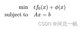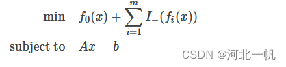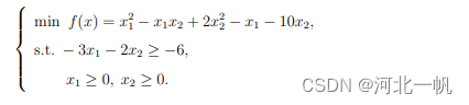 障碍函数内点法的主要思想是:把不等式约束放进目标函数里。以下面的问题为例