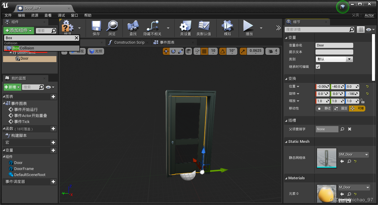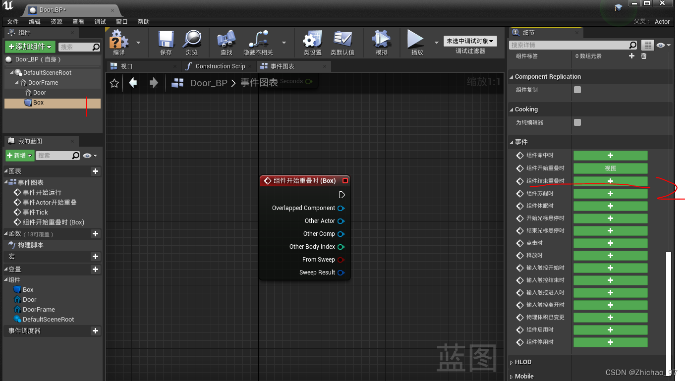20.将Door直接拖拽到事件图表中,来为Door添加一个引用