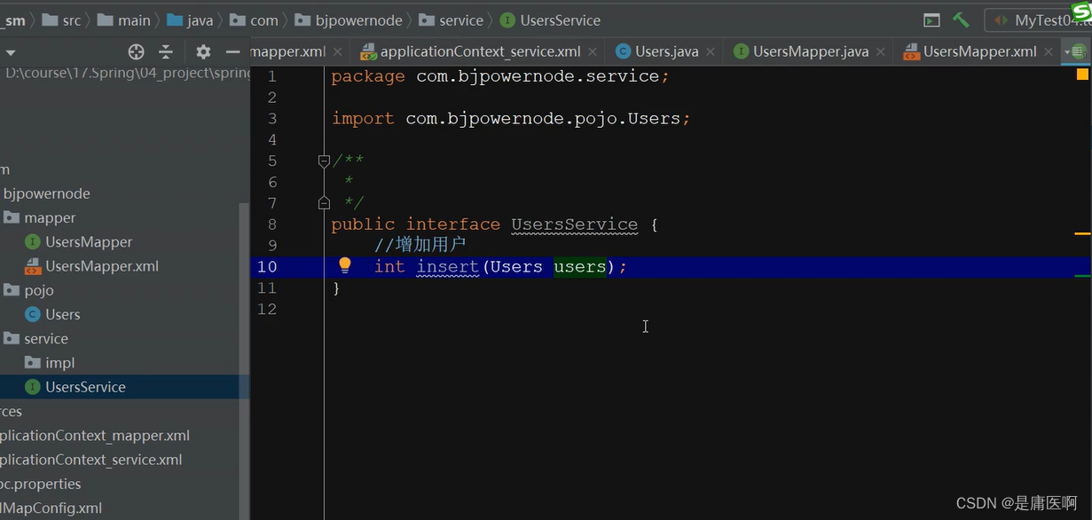 11)添加service包,添加UsersService接口和UsersServiceImpl实现类