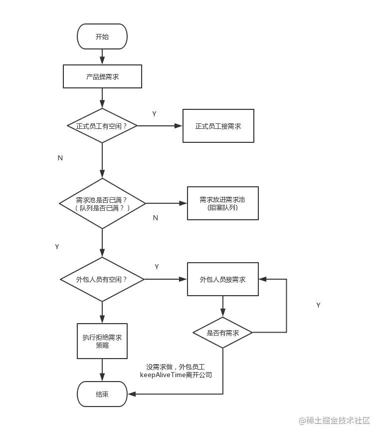 面试官如果要我们讲下线程池工作原理的话,大家讲下以下这个流程图就可以啦: