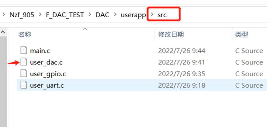 user_dac.c 我们专门添加一个文件,来写我们自己对dac的配置,以便于后续其他功能的添加