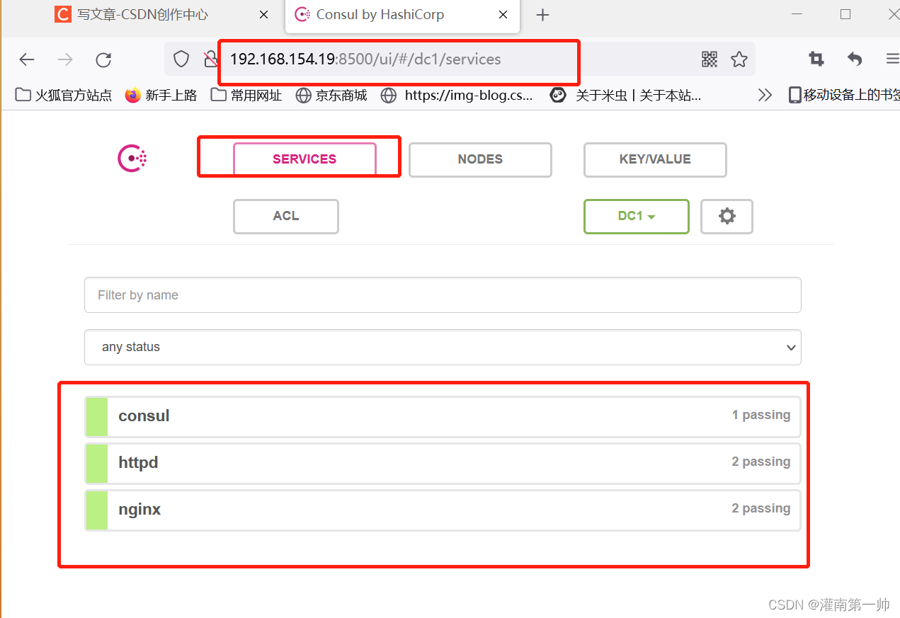 - curl 127.0.0.1:8500/v1/catalog/nginx #查看nginx服务信息