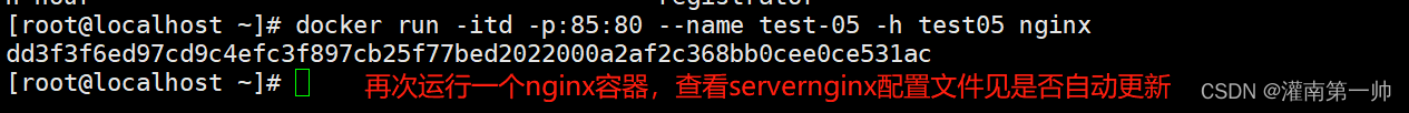 docker run -itd -p:85:80 --name test-05 -h test05 nginx