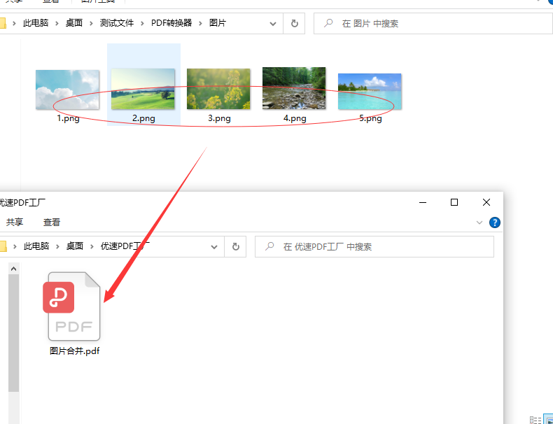 第五步,从案例的结果我们可以看到,软件成功的将五张照片合并转换成了一个pdf文件。