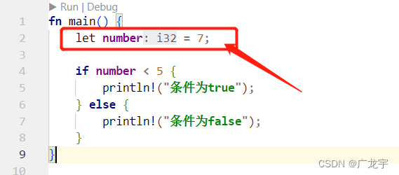 如上,如果condition 是true的话,number就是5,否则就是6,要注意的是,返回的值必须是同一个类型的,因为Rust的类型必须是确定的,以下就是错误的用法
