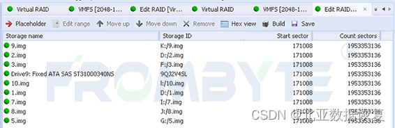 点击Build进行重组。组好RAID后,由于数据从1024*8=8192个扇区开始。如果工具没有跳转到此扇区的功能,那么刚组好的RAID必须和一个文件再进行一次Build重组操作。RAID的起始扇区(Start sectors)选择8192,这个文件可以任意选择起始扇区和大小(Count sectors),下图为重组后的raid5。
