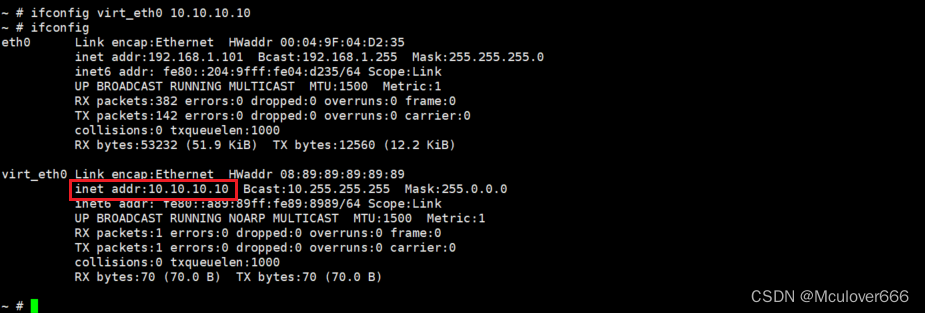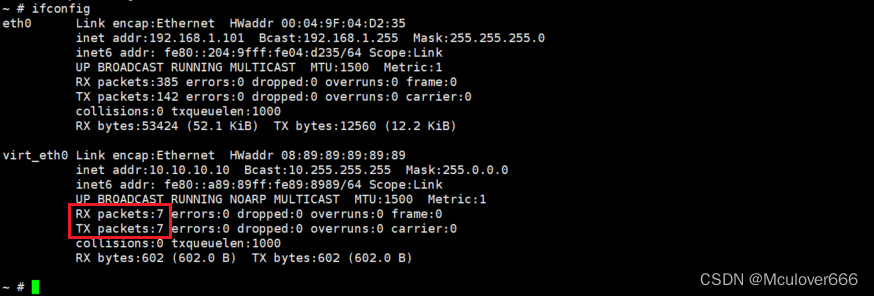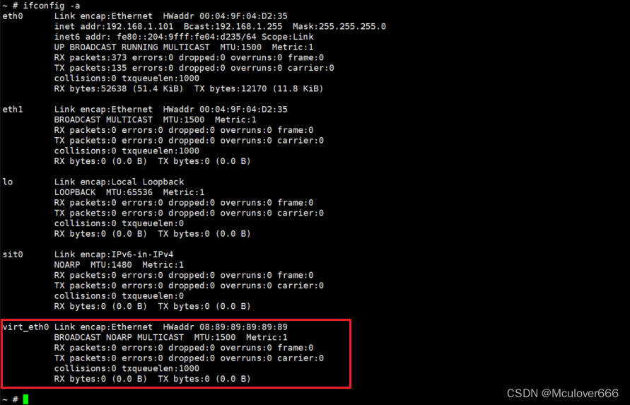 加载之后再查看系统网卡,可以看到多了virt_eth0: