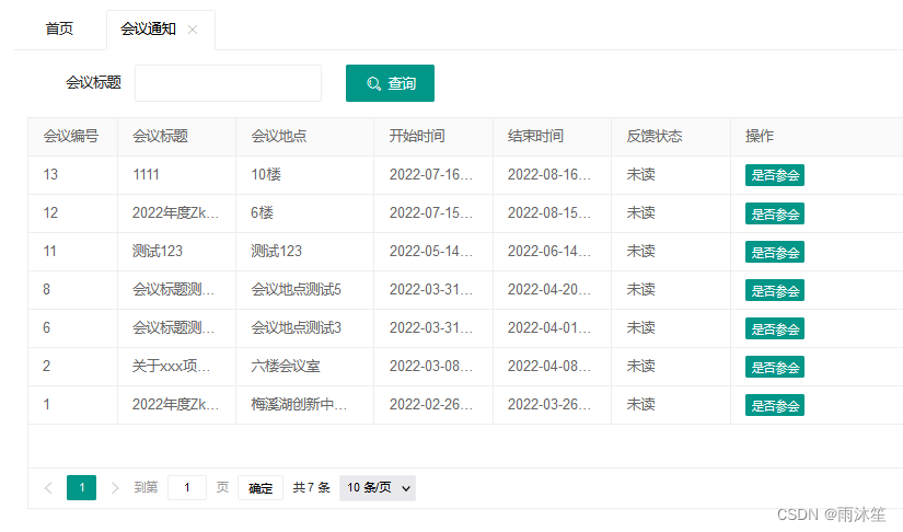 可以看出一共查询出了12条数据,但是要加上条件会议为待开状态