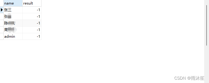 select t1.name,IFNULL(f.result,-1) result FROM (select * from t_oa_user where FIND_IN_SET(id,(SELECT CONCAT(canyuze,',',liexize,',',zhuchiren) from t_oa_meeting_info where id = 12))) t1 left join t_oa_meeting_feedback f on t1.id = f.personId and f.meetingId = 12效果: