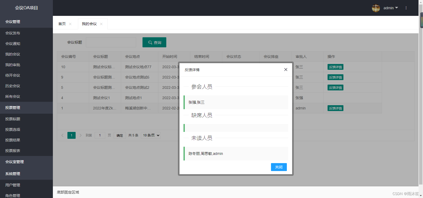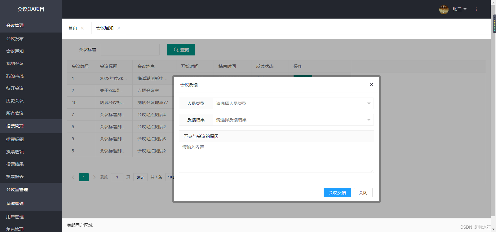 反馈表:t_oa_meeting_feedback