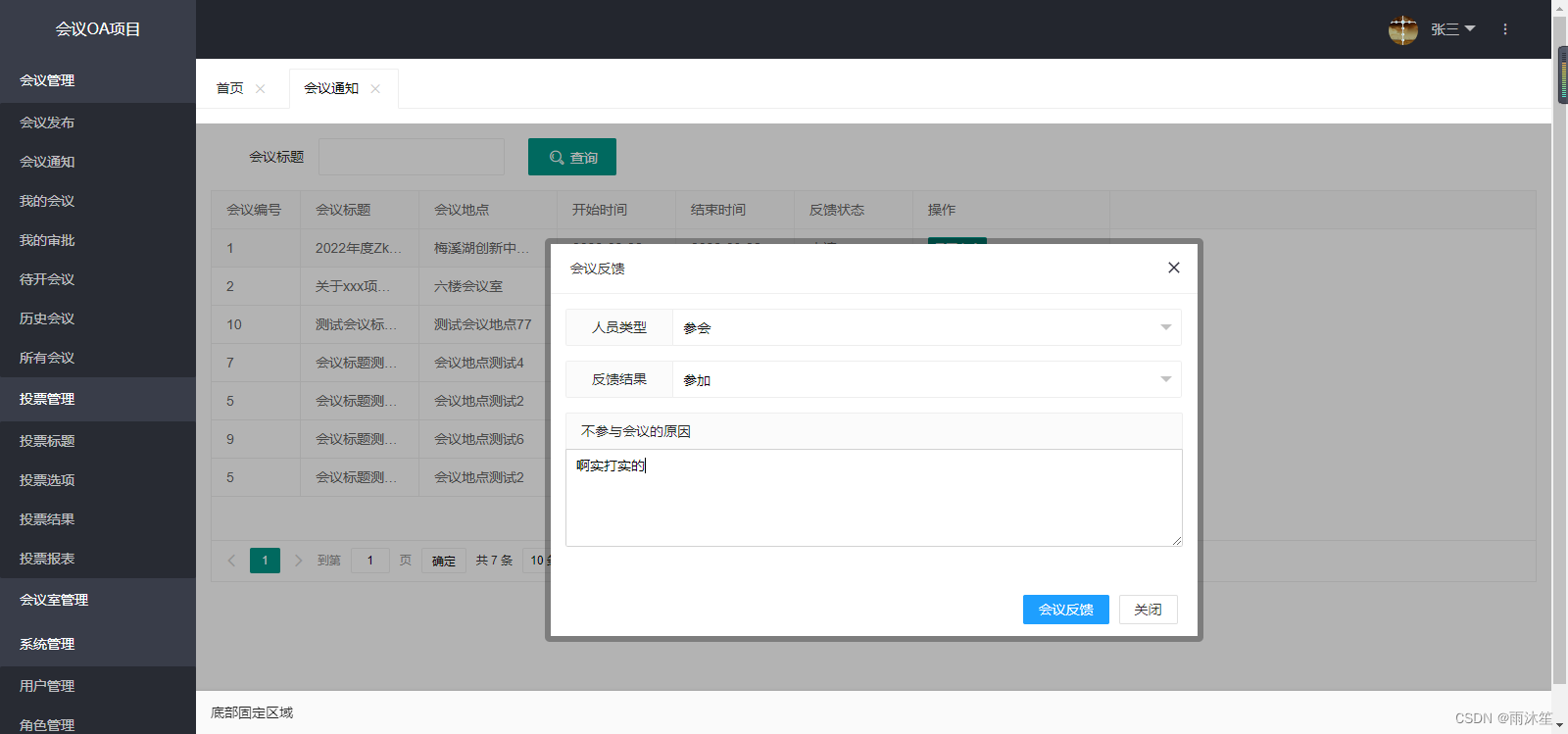 会议反馈表:t_oa_meeting_feedback