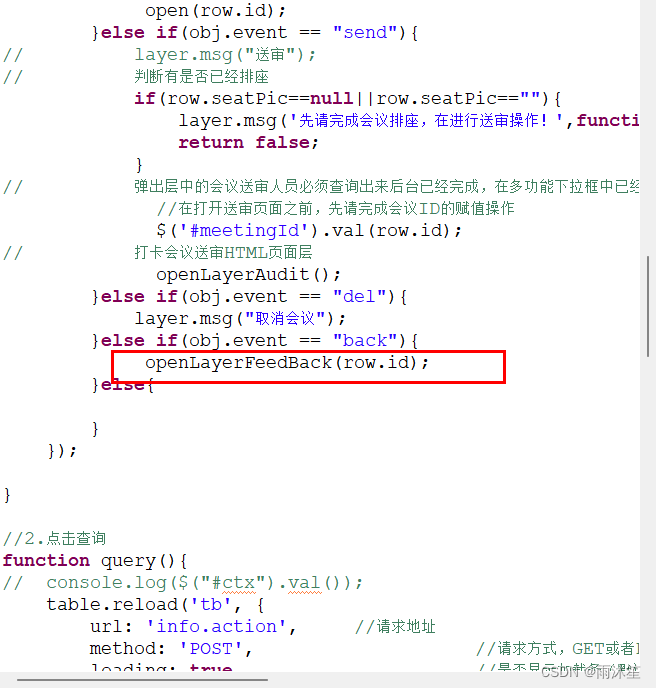 将以下方法加入到MeetingFeedBackAction
