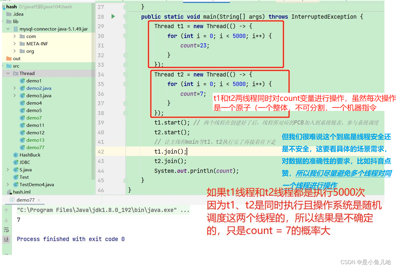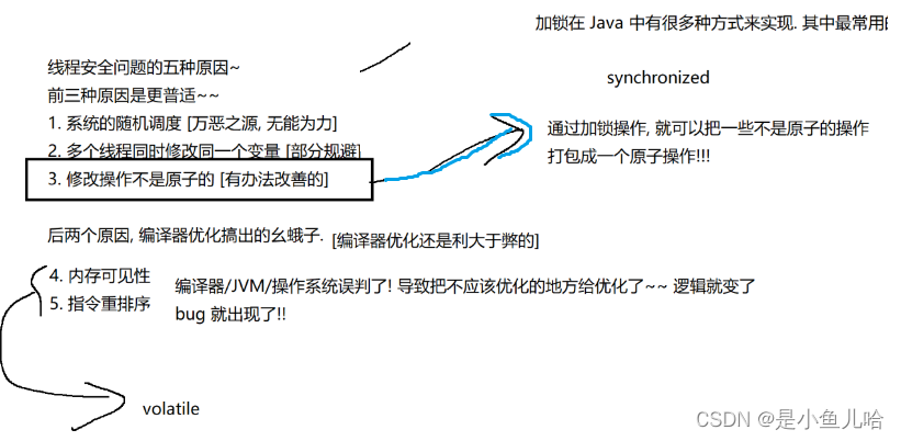 这是因为我们多个线程同时对同一变量修改的所造成的BUG往往和我们操作的原子性有关!!!这时候的操作往往不是一个整体,多个线程并发执行这些操作就可能出现一些问题