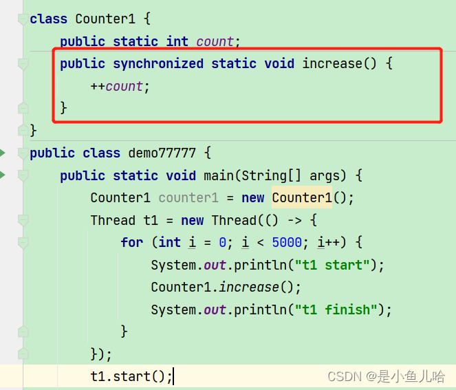 - // 多个线程去调用这个increase方法,其实就是针对这个Counter对象counter1来进行加锁