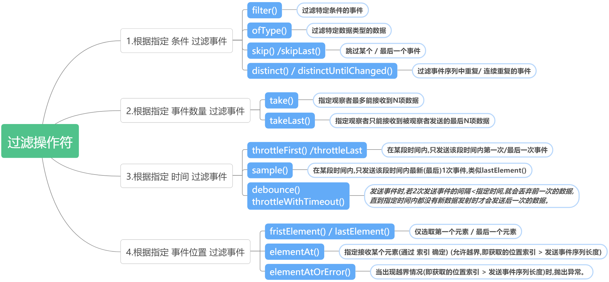 过滤操作符主要用于对事件数据的筛选过滤,只返回满足我们条件的数据。