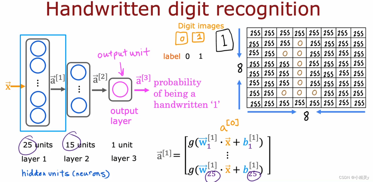 以手写数字01识别为例,我们使用8*8的图像(64个像素强度值),使用具有两个隐藏层的神经网络,其中第一个隐藏层有25个神经元,第二个隐藏层有15个神经元。