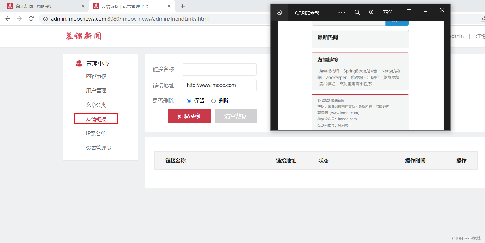 (3)友情链接:我们将使用MongoDB来存储;