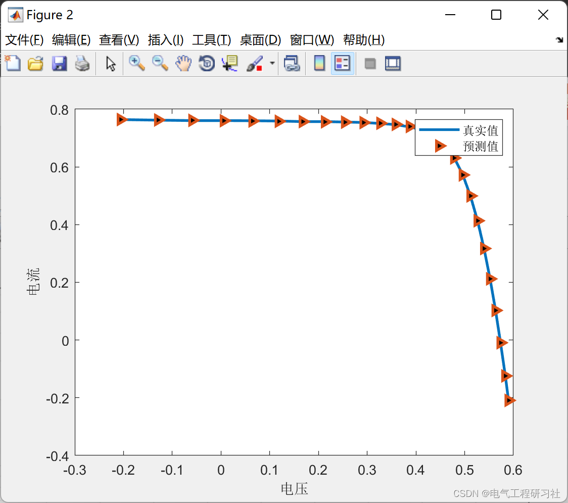 - legend('真实值','预测值')
