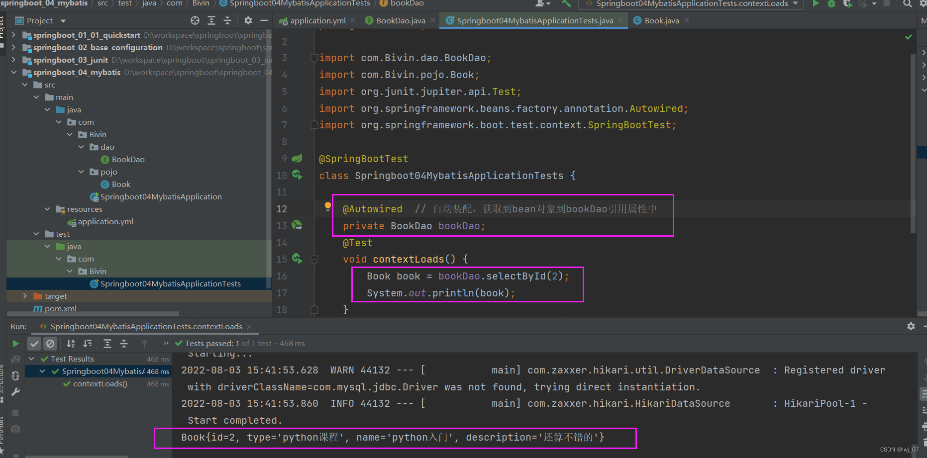 除了yml配置文件信息不同,其余的和springboot整合mybatis的代码都是一样的